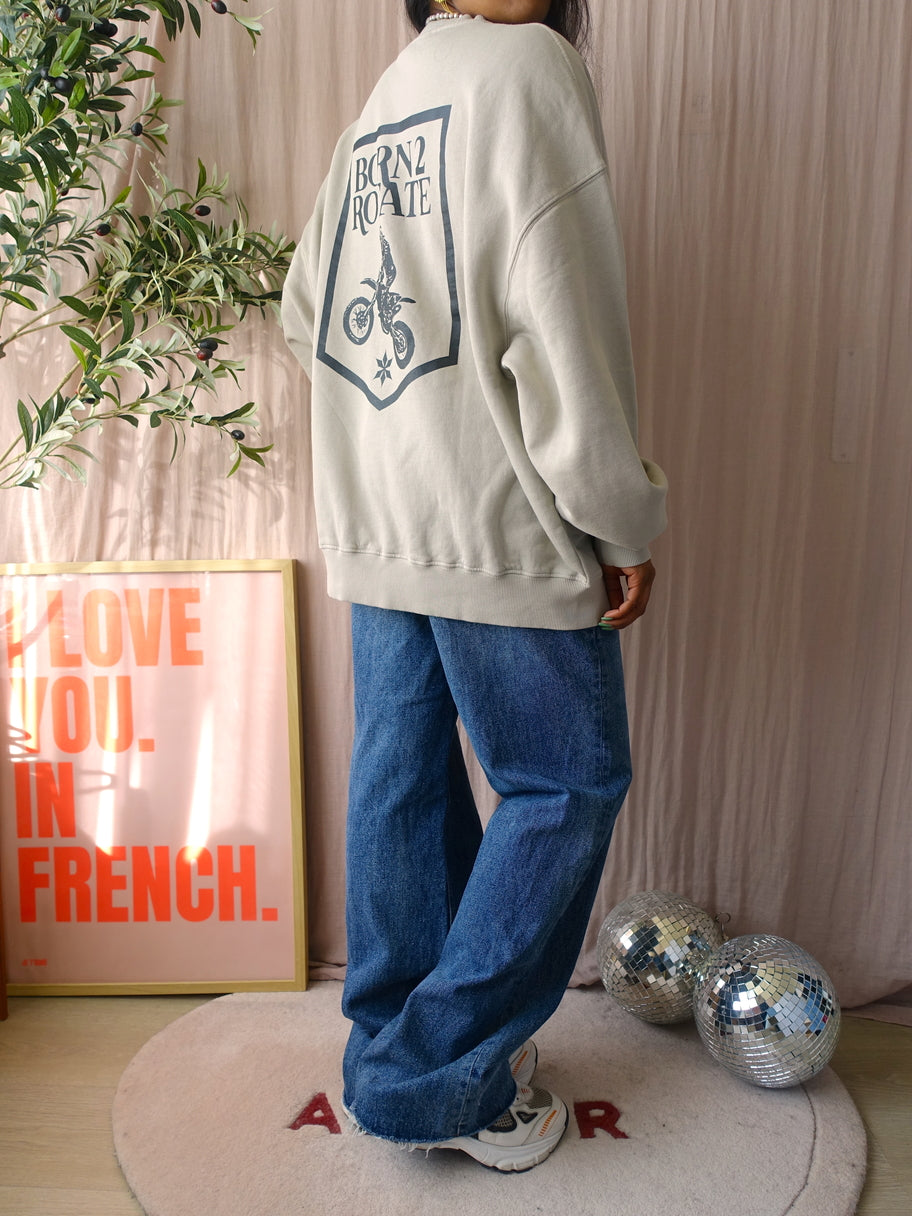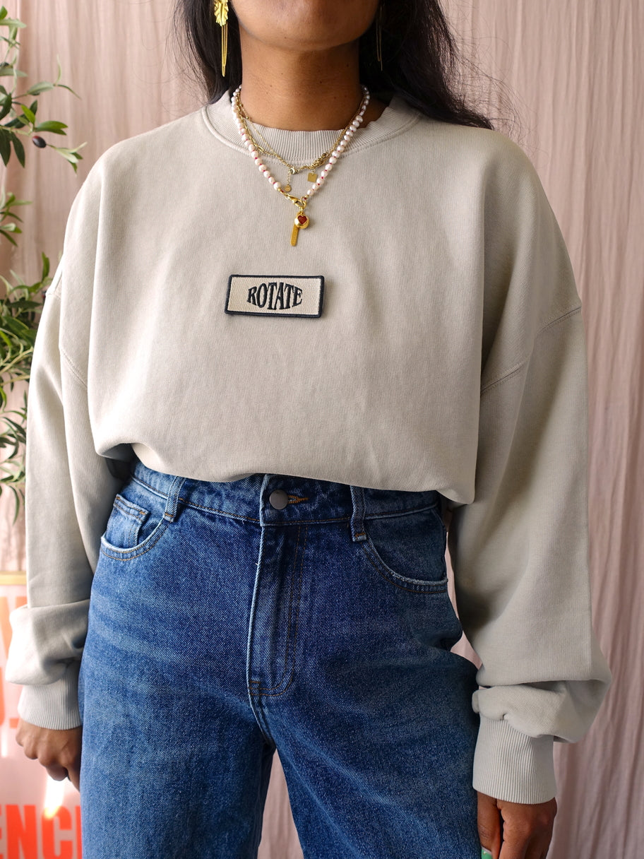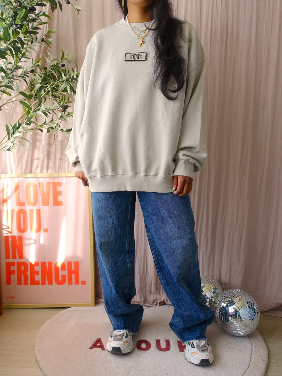 Voor een statement sweater moet je bij ROTATE zijn, zelf draag ik ook graag sweats van ROTATE omdat ze altijd net wat eigenzinniger zijn. Zo ook deze oversized 'Oyster Grey Enzyme' sweater met een klittenband detail met geborduurd lgoo aan de voorzijde en een stoere backprint. De sweater heeft een lichtgrijze tot beige kleur. Deze heeft maat M, maar kun je door de ruime fit dragen tot en met maat L/XL.