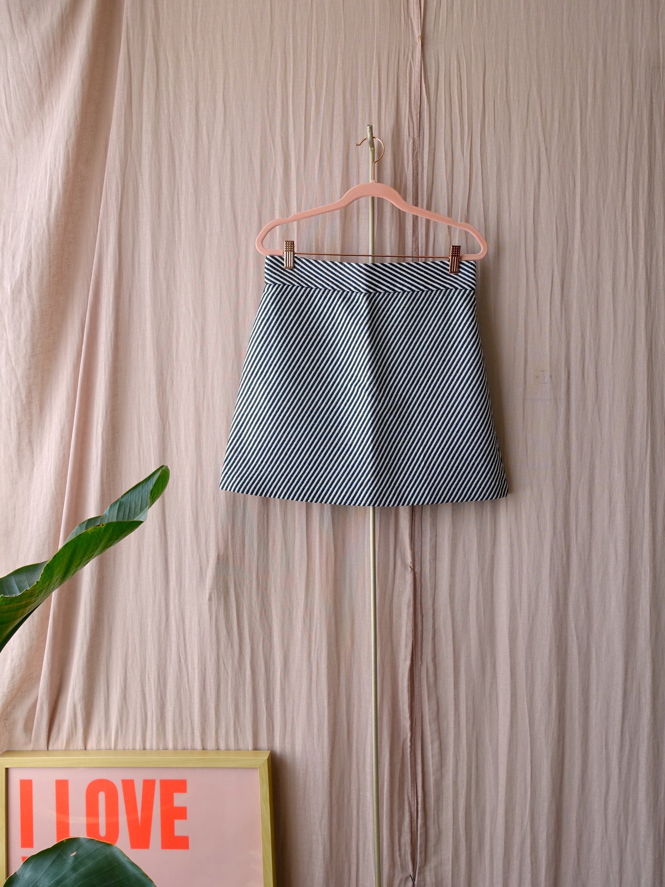 Deze rok van FRNCH moet je even van dichtbij bekijken om het leuke diagonaal gestreepte patroon te zien met een heel subtiel glittertje. Heel tof voor een klassieke look met een zwarte of grijze top of trui en hoge boots er onder. Maar ook in de zomer komt dit rokje goed van pas met een t-shirt en sneakers! De rok heeft een hoge taille met een blinde ritssluiting en loopt in A-lijn.