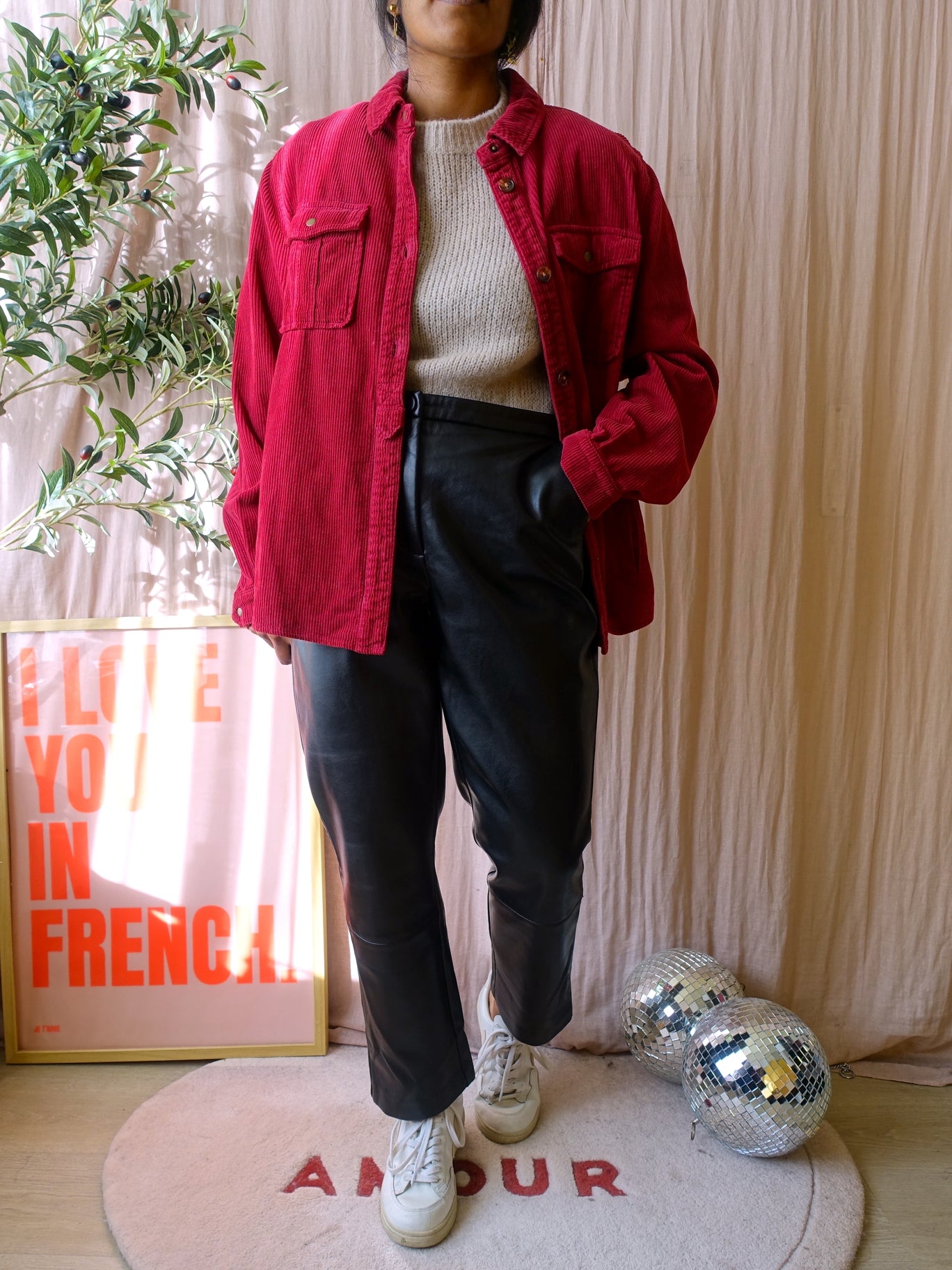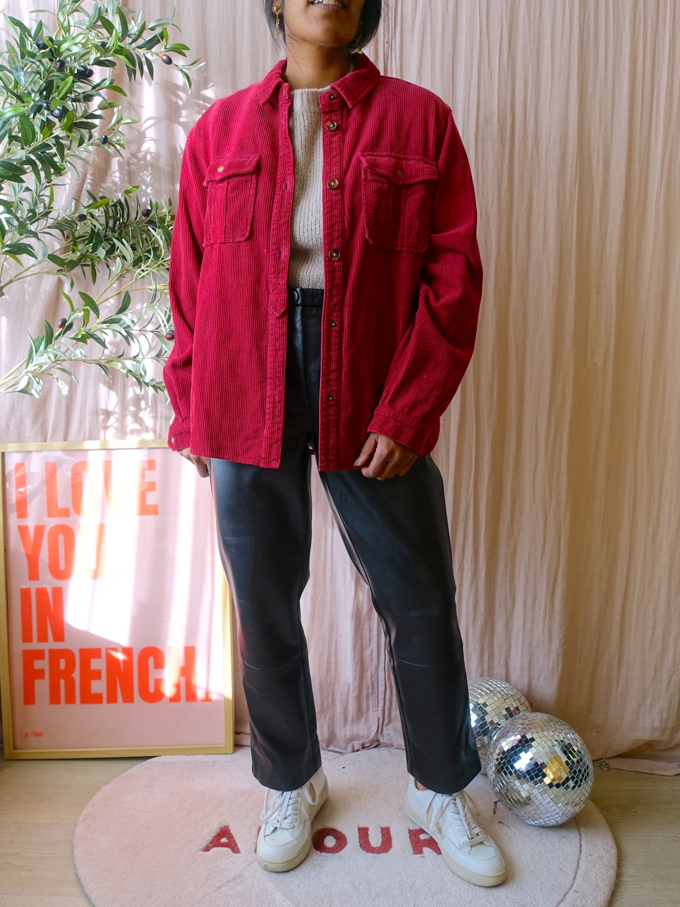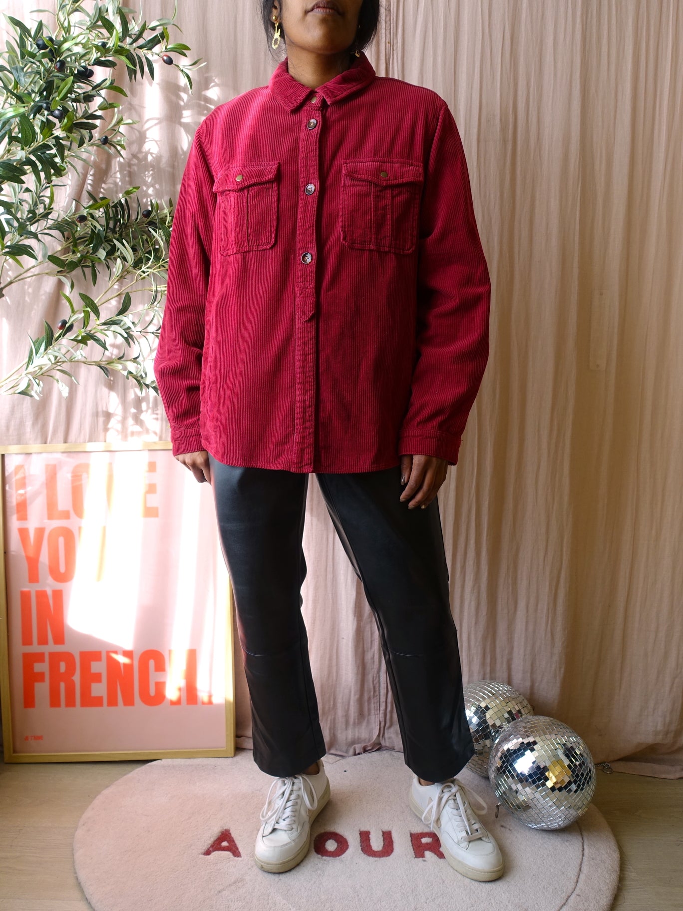 Deze leukerd van Maison 123 kun je als blouse of als shacket (jasje) dragen en is mooi afgewerkt met de knopen die overgaan in drukknopen. Het jasje heeft een donkere magenta roze kleur, ook wel tussen bordeaux en donkerroze in. Deze heeft een loose fit en is in perfecte staat. Corduroy gaat nooit uit de mode, combineer deze met een baggy jeans of juist met een pantalon en een blouse er onder.