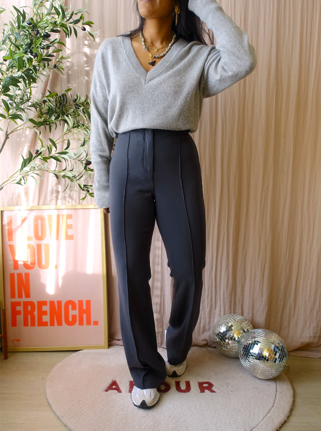 Mauro Grifoni is een Italiaans modehuis wat in 1992 is opgericht. Het merk staat bekend om minimalistische ontwerpen met veel aandacht voor kwaliteit en vakmanschap, precies waar ik van houd. Ik vind niet elke week zo’n parel als deze, een pullover van 100% kasjmier in perfecte conditie. Je kunt kasjmier in het najaar dragen, maar ik doe mezelf al twee jaar op rij op mijn verjaardag in maart een kasjmieren trui cadeau (het liefst tweedehands, zodat er nog geld overblijft voor taart) en draag deze fijne luxe stof dus ook in de lente en met 20 graden nog met heel veel plezier.