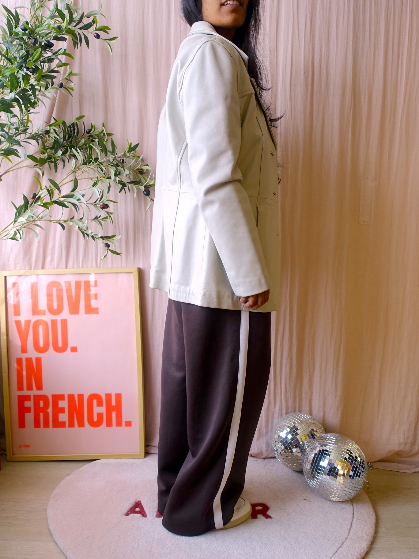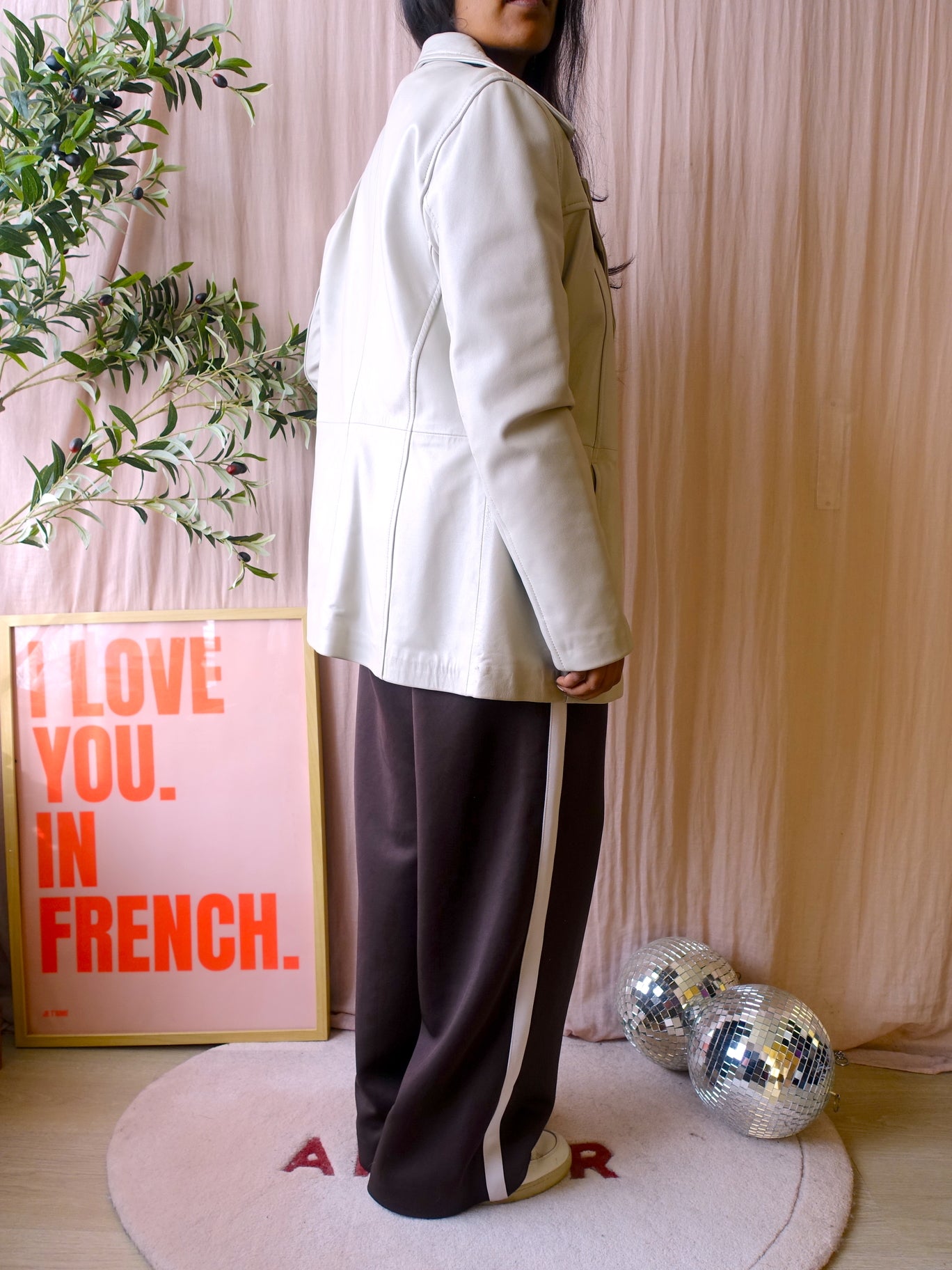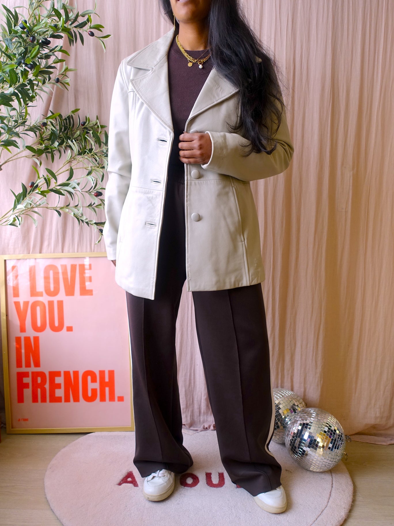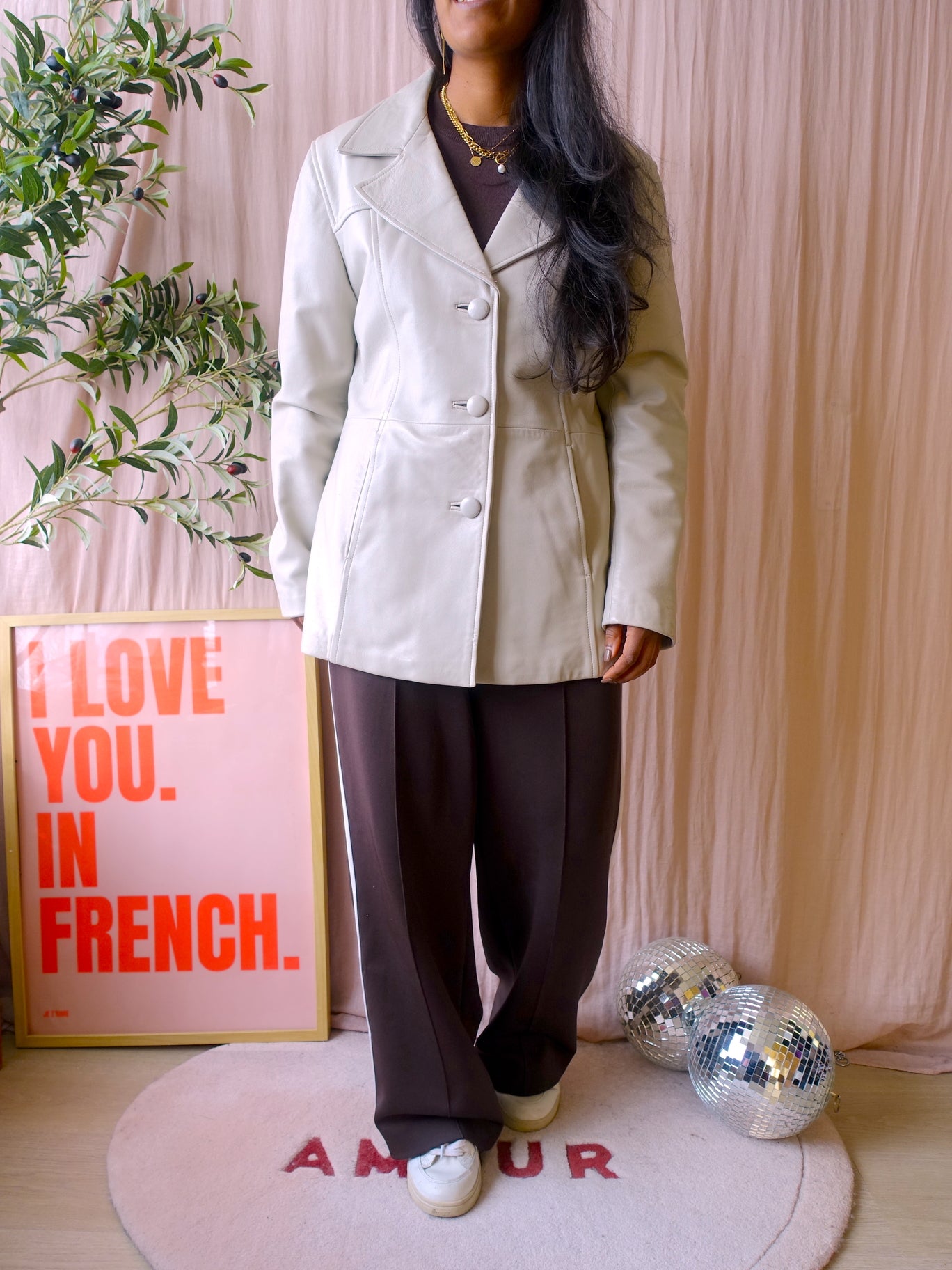 Deze vintage blazer coat heeft zijn kwaliteit al bewezen en is tijdloos, want je ziet look a likes van dit model nu erg veel in de winkels. Tegenwoordig kost een nieuwe blazer van bijvoorbeeld Costes al bijna €100 en dan heb je er een van polyester (wat plastic is, sorry..), dus een echt lederen vintage one met al een heel verhaal achter zich voor €109 is ook leuk.