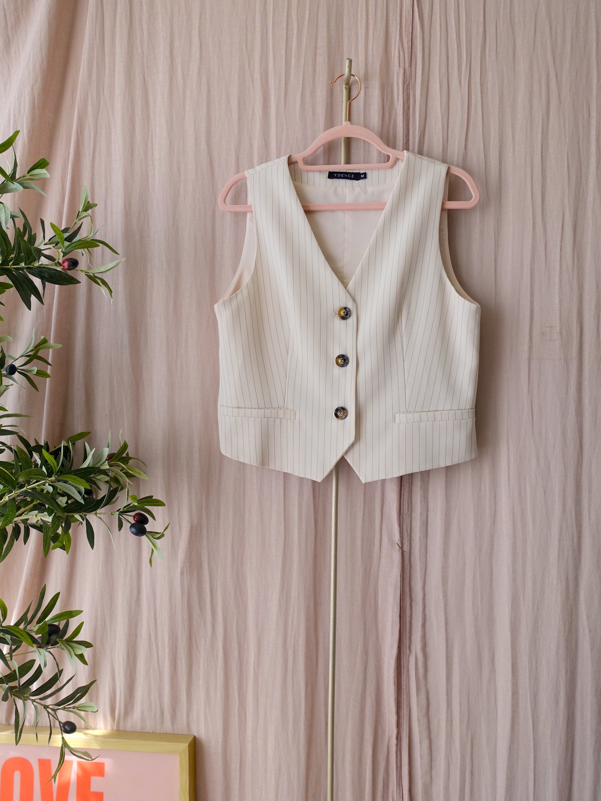 Dit gilet kun je zowel casual als formeel dragen, de stijl van Ydence is over het algemeen casual dus daarom heb ik deze informeel gecombineerd op de foto's. Ik vond deze leukerd als nieuw en deze is gevoerd. In het carelabel vind je nog een reserve knoop.