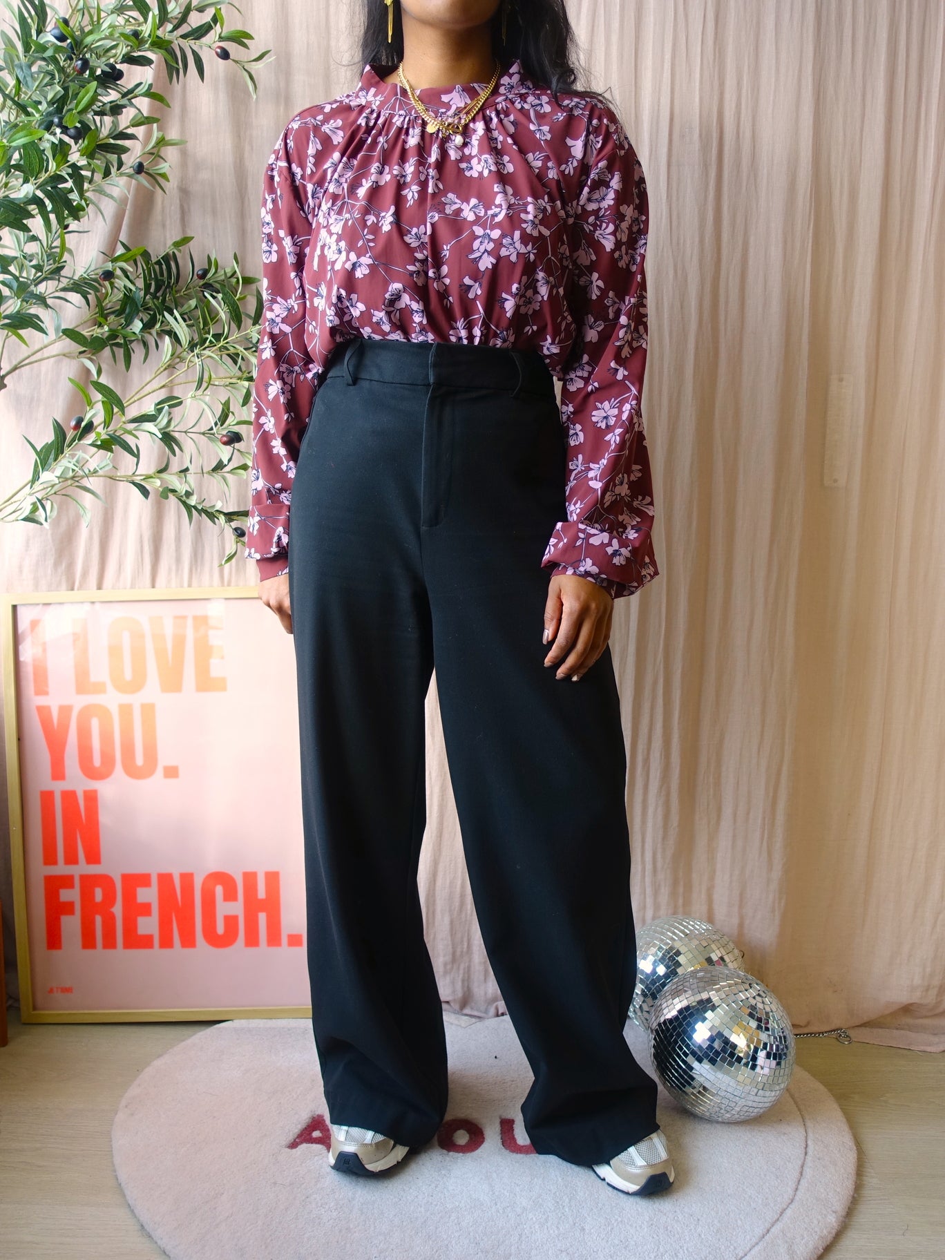De mooie travelstof items van Studio Anneloes zijn tijdloos en altijd comfortabel te dragen. Ze zijn redelijk prijzig als je ze nieuw koopt, maar gaan lang mee en gelukkig kun je bij Pindawerk Studio Anneloes items voor minder dan de nieuwprijs scoren. Deze top is er eentje met een mooie bloemenprint en heeft een donkere magenta tot burgundy kleur. Deze heeft volumineuze mouwen en een opstaand kraagje die aan de achterkant sluit met een teardrop. De top heeft een rechte tot ruime fit. Deze vond ik als nieuw en heeft nog een reserve knoopje in het carelabel.