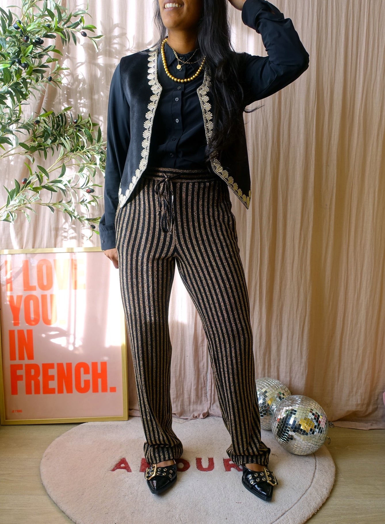 Over de travelstof blouses van Studio Anneloes hoef ik eigenlijk niets meer te zeggen, deze zijn altijd door jullie geliefd en je kunt ze eindeloos combineren, naast dat ze natuurlijk ook mooi zijn en comfortabel dragen. Ik vind ze niet vaak in het zwart, dit is een hele fijne basic voor elk seizoen. De blouse valt wat langer en loopt rond af, deze heeft een rechte fit. Deze lijkt door het zonlicht op sommige foto's grijzig, maar is echt nog helemaal mooi zwart. De blouse heeft maat L, maar ik zou deze adviseren met maat M.