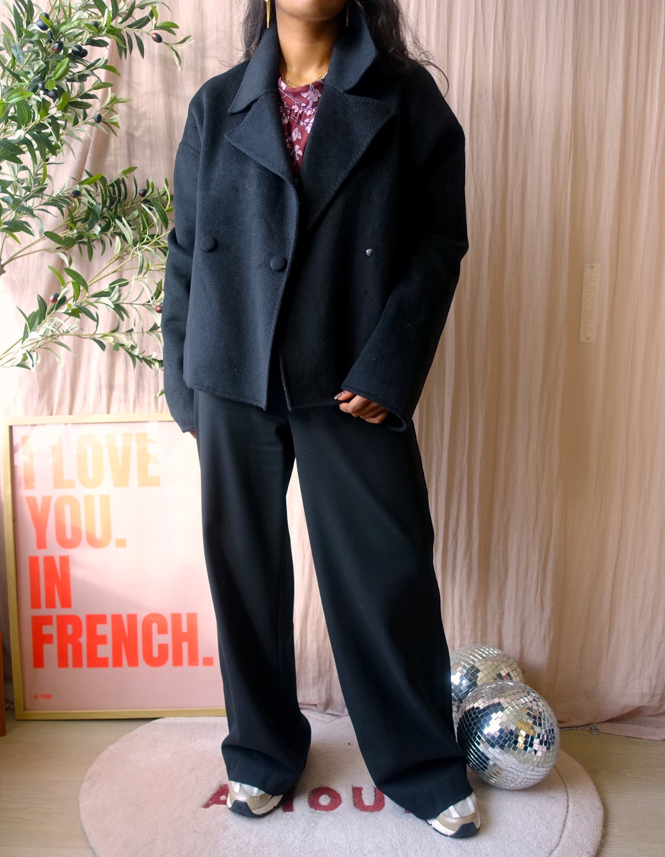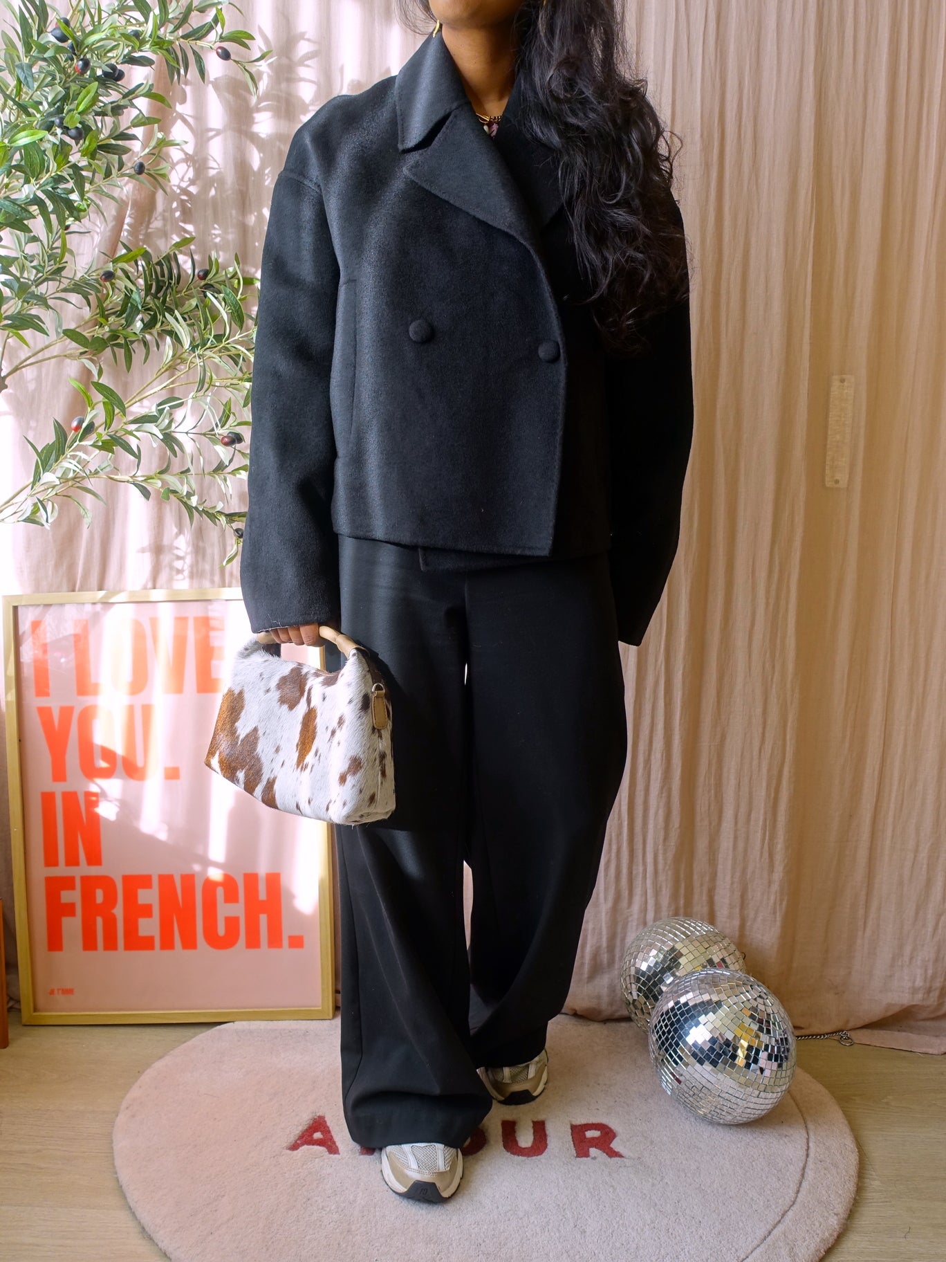 Cropped wollen jasjes zijn sowieso tijdloos, maar zie je vooral nu overal in de winkels. Dit was dan ook de beste vondst van de inkoop-week, want ik scoorde dit Summum jack in nieuwstaat! Stomen was eigenlijk niet eens nodig. Het jack heeft een boxy fit, sluit met twee mooie drukknopen (van goede kwaliteit!) en is stijlvol afgewerkt. Ik zou 'm bijna zelf willen houden. Deze is ongevoerd en kun je daardoor dragen als tussenjas of als winterjas als er geen strenge vorst is. De zakken zijn wel gevoerd, deze zijn nog dicht en kun je openen met een (torn)mesje. In het carelabel vind je nog een zakje met reserve knopen.